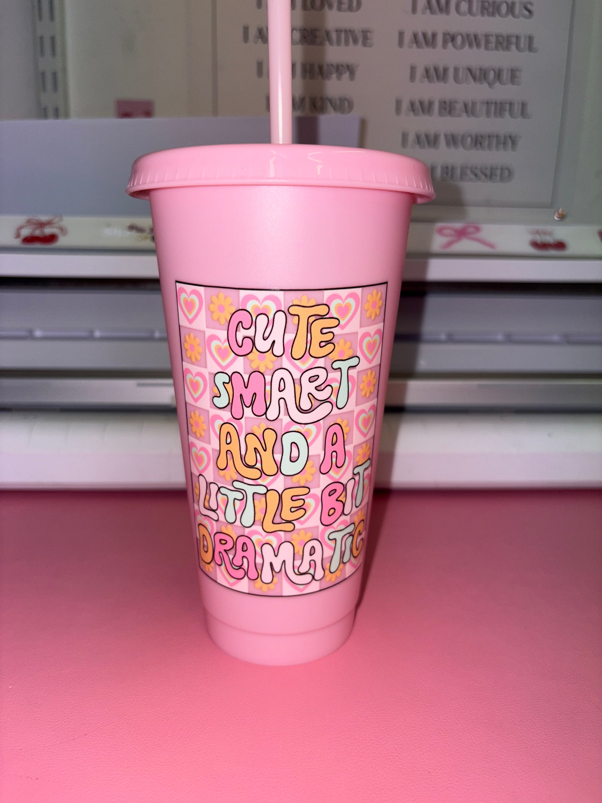 Cute smart and a little bit dramatic pink cold cup💗