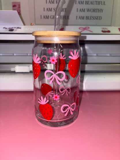 Cute strawberry bow glass can!