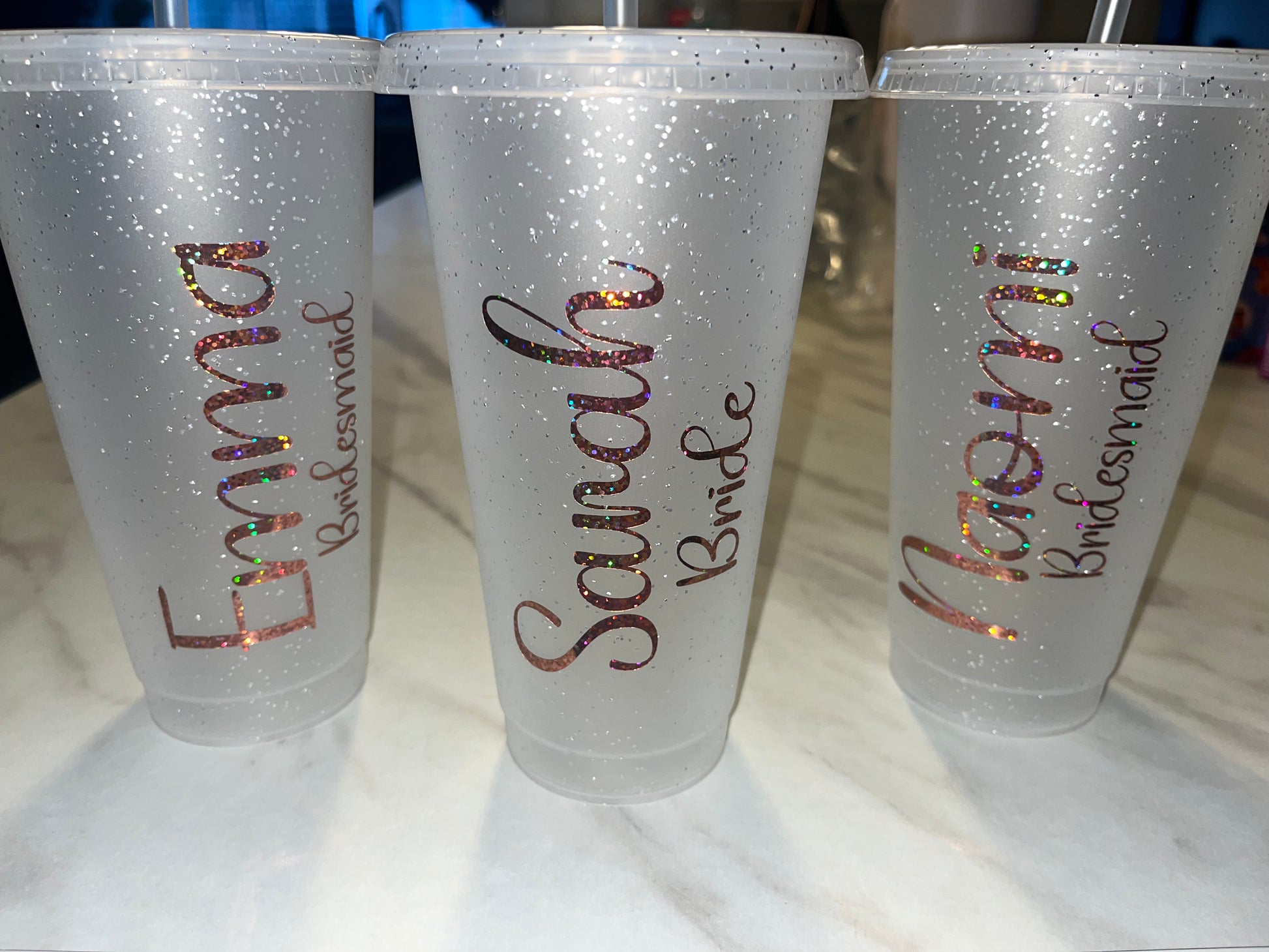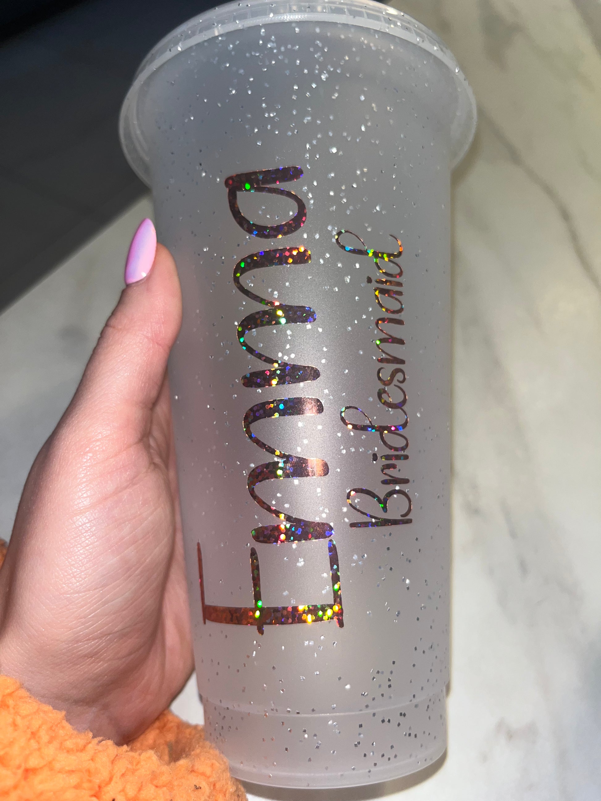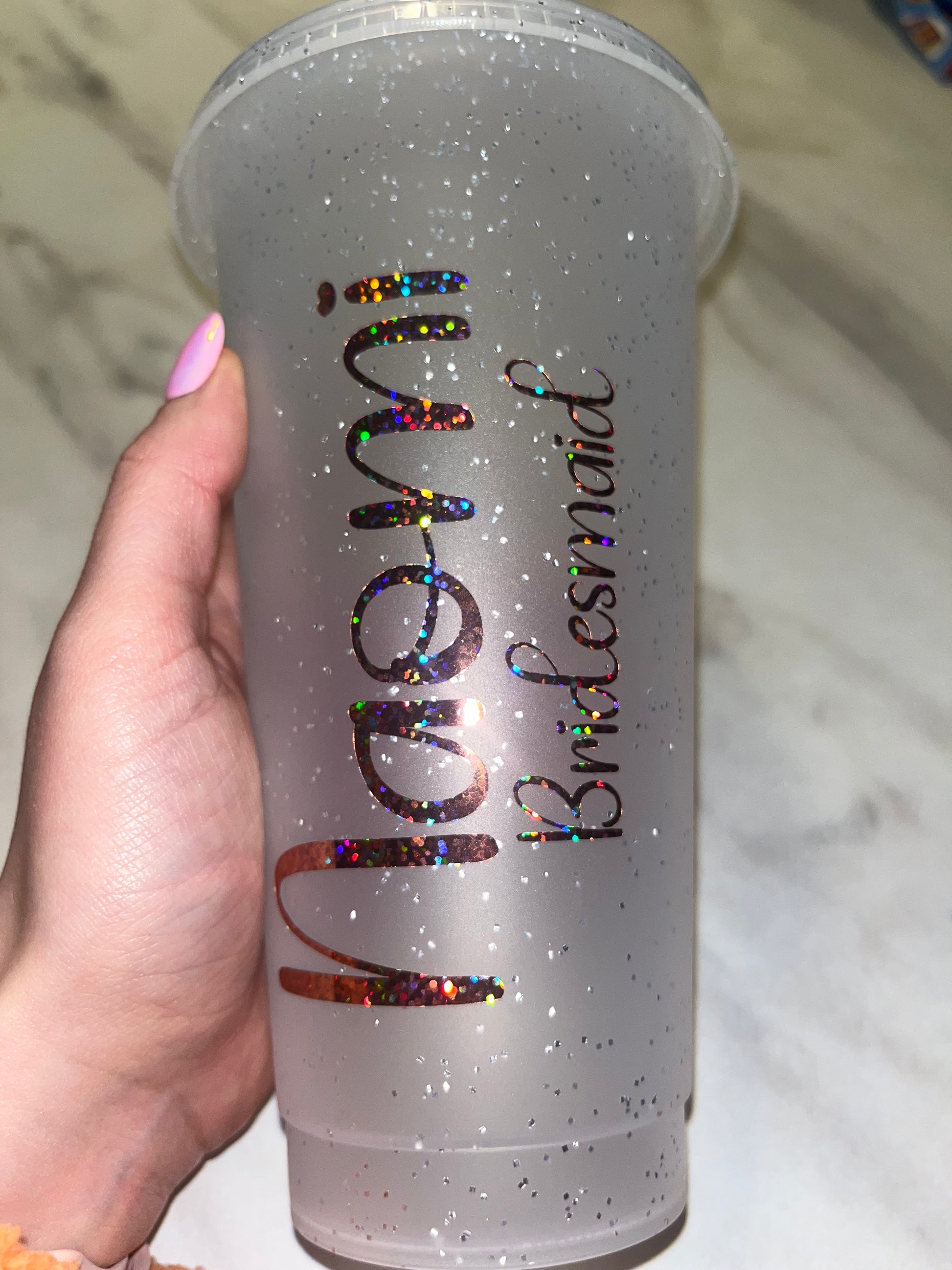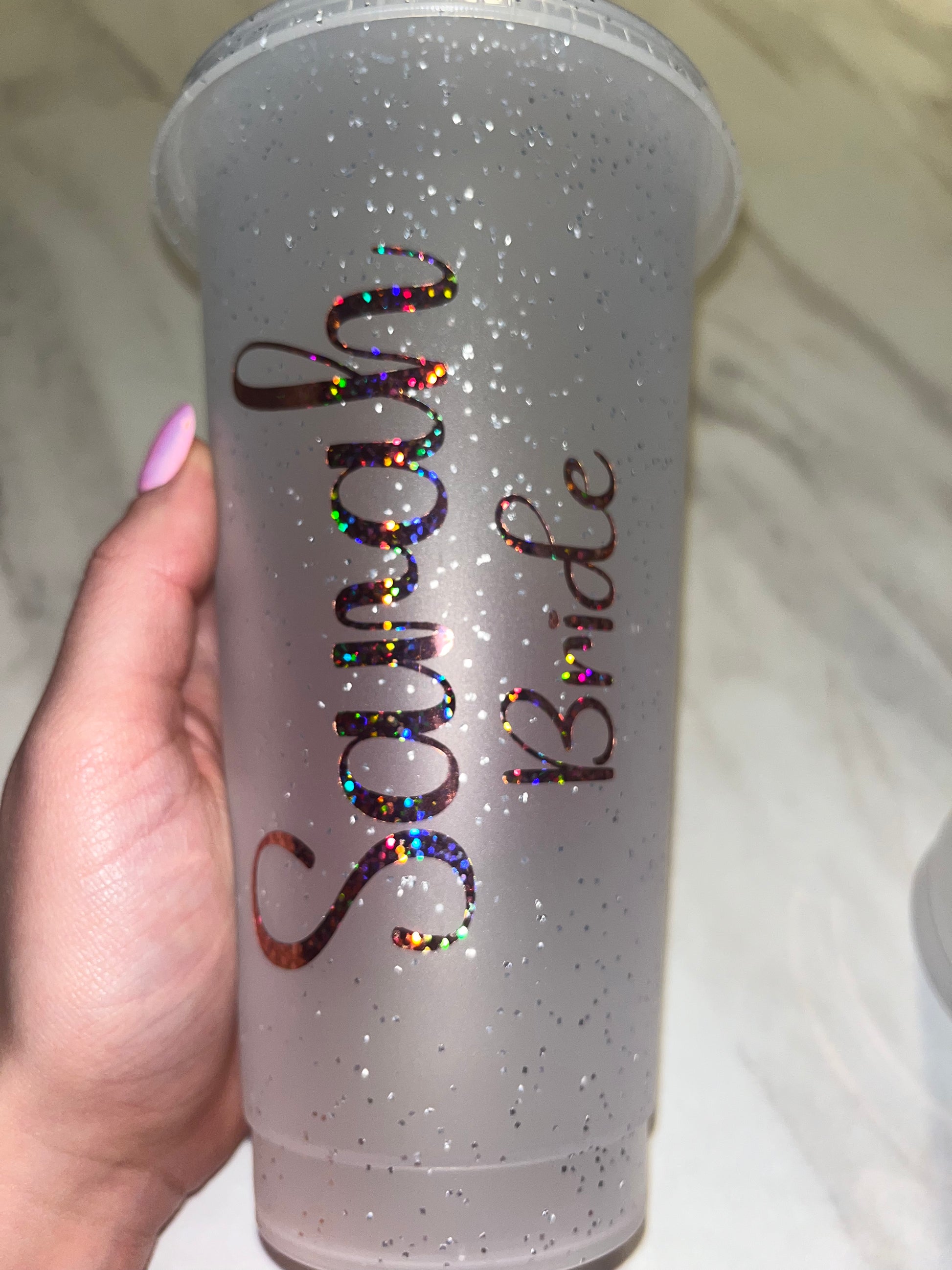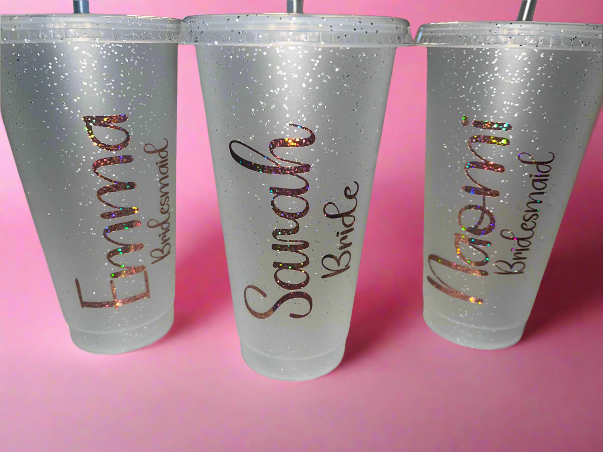 Team bride cold cups💕can be done in silver gold rose gold pink or white💍leave in notes what colour vinyl you want and names you want “Sarah bride” “Sandie mother of the bride” etc💓
